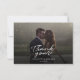 A great and thoughtful way to thank your friends, family, and coworkers who graced you their presence on your your wedding day with this modern photo thank you cards with script hand lettered "thank you" and a love heart.