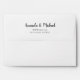 These white pre-addressed 5 x 7 wedding invitation envelopes are easy to customise with your details. We've placed your return address on the flap in a standard black, but you can easily change the text colour to suit your style. In that case, you might see a colour in the editing tools that you like, or if you have a specific tone in mind, you can enter that colour's number if you have it. You can also change the font, as there are lots of styles to choose from. We've chosen a lively, modern script style for your names, but you might prefer another look. You can also alter the size of the text.