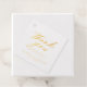 Elegant gold foil wedding favour tags with "Thank You" in modern calligraphy style font. Personalise with your names and wedding date.