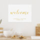featuring title "Welcome" in real gold foil modern script font with details in real gold gold modern sans serif font on white background.