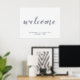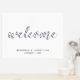 featuring title "Welcome" in real silver foil modern script font with details in real silver modern sans serif font on white background.
