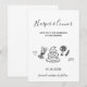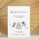Delicate line art wedding icons—including champagne glasses, a tiered cake, bouquet, rings, and sweet heart accents—add a playful yet refined touch. The simple monochrome palette keeps the design timeless, making it perfect for formal celebrations, modern weddings, or classic black tie events.