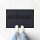 Chic, modern and simple doormat with the text welcome and your names in black hand lettered script calligraphy and stylish typography on a navy blue background. Simply add your family name. Great gift for a new home, new homeowners or newlyweds. Exclusively designed for you by Happy Dolphin Studio. If you need any help or matching products please contact us at happydolphinstudio@outlook.com.