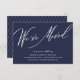 Navy blue We've moved new address announcement featuring a modern script font with a coordinating back.