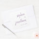 These elegant, minimalist wedding stickers feature colourful, lavender modern script typography and clean, sans serif text on a white background, for a simple and stylish design you will love.