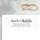 This simple, modern wedding return address label features the couple's names in stylish black script, with two lines for the address below in black sans serif font on a white background.