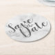 Modern Script White Marble Wedding Save the Date Round Paper Coaster