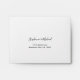 These white pre-addressed RSVP return address envelopes are easy to customise with your details. We've made the address a standard black, but you can easily change the colour to suit your style. In that case, you might see a colour in the editing tools that you like, or if you have a specific tone in mind, you can enter that colour's number if you have it. You can also change the font, as there are lots of styles to choose from. We've chosen a lively, very casual, modern script style for your names, but you might prefer another look. You can also alter the size of the text.