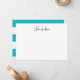 This modern note card features modern script for your name/business name with a white stripes and customisable back background colour (simply click customise to change the background colour).