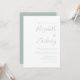 This simple modern wedding invitation features sea glass green text on a white background. Add the names of the bride and groom in stylish handwriting calligraphy and the details in sans serif font. The reverse side is a matching shade of solid sea glass.