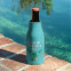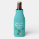Modern Shamrock Clover Irish Happy St. Patrick`s Day Bottle Cooler. A Happy St. Patrick`s Day text with Irish shamrocks drawing for luck on a bright blue background. You can change the text.