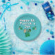 Modern Shamrock Clover Irish Happy St. Patrick`s Day Paper Plate. A Happy St. Patrick`s Day text with Irish shamrock drawing for luck on a blue background. You can change the text.