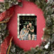 Modern Signature Script Cream and Olive Photo Foil Holiday Card