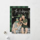 Modern holiday card featuring your family name displayed at the top of the design in a white handwritten signature script. Personalise the card with a custom greeting, the year, and your full-bleed vertical photo. The trendy holiday card reverses to display a rustic green buffalo plaid pattern.