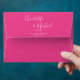 Featuring signature script names, this modern return address envelope can be personalised with your names and address details in chic white lettering on a hot pink background. Designed by Thisisnotme©