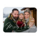 Modern holiday photo magnet featuring "Merry Christmas" displayed in a white handwritten script overlaying your horizontal photo. Personalise the Christmas photo magnet with your family name and the year.
