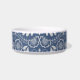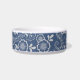 Personalised elegant silver and french blue Victorian floral lace patterned pet bowl. You can customise the background colour and nameplate with a colour of your choice.