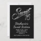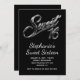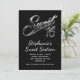 Create your own modern 16th birthday with faux chrome silver black typography digital art invitation.