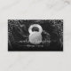 Stylish personal trainer business cards featuring a trendy black & silver marble background, glitter, a sparkling kettlebell, a feminine signature script, and a professional text template that is easy to personalise. This would be perfect for a fitness coach who works in a gym, or for a self-employed health coach.