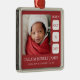 Celebrate your baby’s first Christmas with this beautifully personalized birth stats ornament, designed to become a treasured keepsake for years to come. This square metal ornament features a rich red background with crisp white accents, providing a bold yet elegant frame for your newborn’s photo and birth details. Customizable text includes your baby’s full name, birth date, time, weight, and length — making it a heartfelt way to remember such a meaningful day.