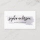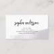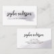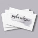 These elegant black and white business cards feature a silver coloured, trendy brush stroke on a simple white background. Your name appears in modern handwritten script typography.