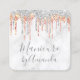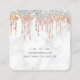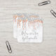 Elegant nail salon business card design. Modern faux silver and copper rose gold dripping glitter, white marble background and elegant calligraphy font.