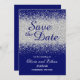 This modern and classy "Save the Date" card has a sliver glitter effect on a rich royal blue background. You can customise the font style and colour any way you like as well as change the background colour of the card. This is part of a beautiful matching wedding suite that can be fully personalised.