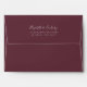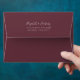 The inside of this elegant modern wedding invitation envelope features a silver faux glitter design on a burgundy background. Customise the back flap with the names of the bride and groom in silver grey handwriting script and return address in copperplate font on a burgundy background.