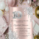 A modern, chic, and glamourous with silver glitter drips on a rose gold background.
