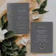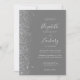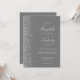 The left-hand edge of this elegant modern wedding invitation features a silver faux glitter design. The customisable text combines silver grey handwriting, copperplate and italic fonts on a medium grey background. The reverse side provides space for wedding details on a solid grey background, along with a QR code guests can scan to visit your website and RSVP, which saves the cost of printing and mailing separate RSVP cards.