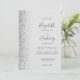 The left-hand edge of this elegant modern wedding invitation features a silver faux glitter design. The customisable text combines charcoal grey handwriting, copperplate and italic fonts on a pale grey background. The reverse side provides space for wedding details on a solid grey background, along with a QR code guests can scan to visit your website and RSVP, which saves the cost of printing and mailing separate RSVP cards.