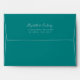 The inside of this elegant modern wedding invitation envelope features a silver faux glitter design on a teal blue background. Customise the back flap with the names of the bride and groom in silver grey handwriting script and return address in copperplate font on a teal background.