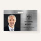 Custom Modern Silver Grey Company Photo ID Badge. Personalise this corporate id card badge with your employees name, position, photo and your company logo on the front side and your custom info text on the back side. The employee photo works best in square format. Your logo works best as a png square format with transparent background. The placeholder logo you see on the badge will be completely replaced with your own logo design.