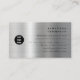 A modern simple design with a silver grey metal look background. A minimalist personalised business card for both men and women who have a flare for style. A simple and professional way to introduce your business. Personalise your details and business logo to create your own unique business card.