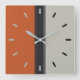 Modern Silver Grey Navy Orange Red Stripe Pattern Square Wall Clock