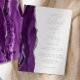 The left-hand edge of this elegant modern wedding invitation features a purple watercolor agate border trimmed with faux silver glitter. The customisable text combines handwriting, copperplate and italic fonts in real silver foil on a white background. The reverse side features a matching purple and silver agate design.