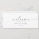 This modern silver script hanging seating chart welcome header is perfect for a minimalist wedding. The simple silver grey colour design features unique industrial lettering typography with modern boho style. Customisable in any colour. Keep the design minimal and elegant, as is, or personalise it by adding your own graphics and artwork. The card prints on the front and back (double-sided). Please check the collection for the coordinating table number seating chart cards.