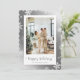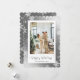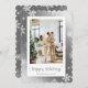 Cute silver snowflake photo Happy Holidays card featuring snowflakes on a metallic silver background. Easily personalise this silver photo holiday card with your photo and text.