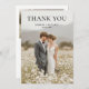 This wedding thank you card features a single photo on the front and a photo on the back of the card with a classic, simple type treatment. Easily customise all text and add your favourite photos. A simple, modern thank you card — perfect for your event!