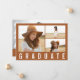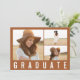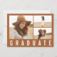 Modern minimal 3 photo graduation simple contemporary announcement card. Terracotta and white design.