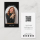 A beautiful arch design incorporating 1 of your own photos and your QR Code. This minimalist black and white business card is ideal for anyone. A simple and professional way to introduce your business. Social media icon placeholders included in the design of this business card for you to replace with your proffered social media icons. Personalise your details to create your own unique black and white business card. A perfect photography business card.