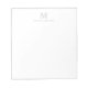 The design features a personalised monogram initial and name in a simple and modern typographic font.