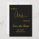This elegant black and gold wedding save the date is perfect for a modern wedding. the simple design features elegant gold calligraphy on a black background.