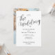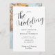 Elegant, simple, minimalist black and white wedding invitation with custom engagement photo and a chic bold calligraphy script.