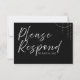 The perfect RSVP card to add to your simple, classy black and white wedding stationery. The front of this card has beautiful typography with string lights. Flip the card over to reveal your guest's RSVP information offering multiple options for responding, making the process more efficient for everyone.