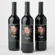 Modern Simple Black Lucky In Love Clover Photo Wine Label