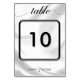 Introduce your wedding reception with these bespoke table number signs, thoughtfully crafted for couples seeking modern sophistication. Featuring a classic white silk backdrop and graceful script typography, these signs artfully balance minimalism and elegance, establishing a seamless and refined ambiance.