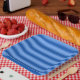 Modern Simple blue Navy Two Tone Stripe name Paper Plate