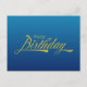 Modern Simple Blue Watercolor Happy Birthday Postcard
