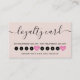 Elegant modern simple pastel blush pink script makeup hair pink heart loyalty card with modern hand lettering style brush typography , a simple, professional and minimalist card. offer 10 treatments and discount to your customers.